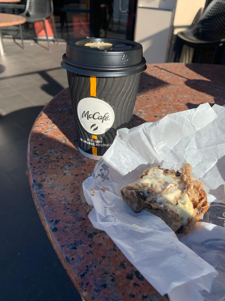 Then a special treat for Liz, breakky at Maccas, and then Bunnings for some spare straps and some eye bolts…