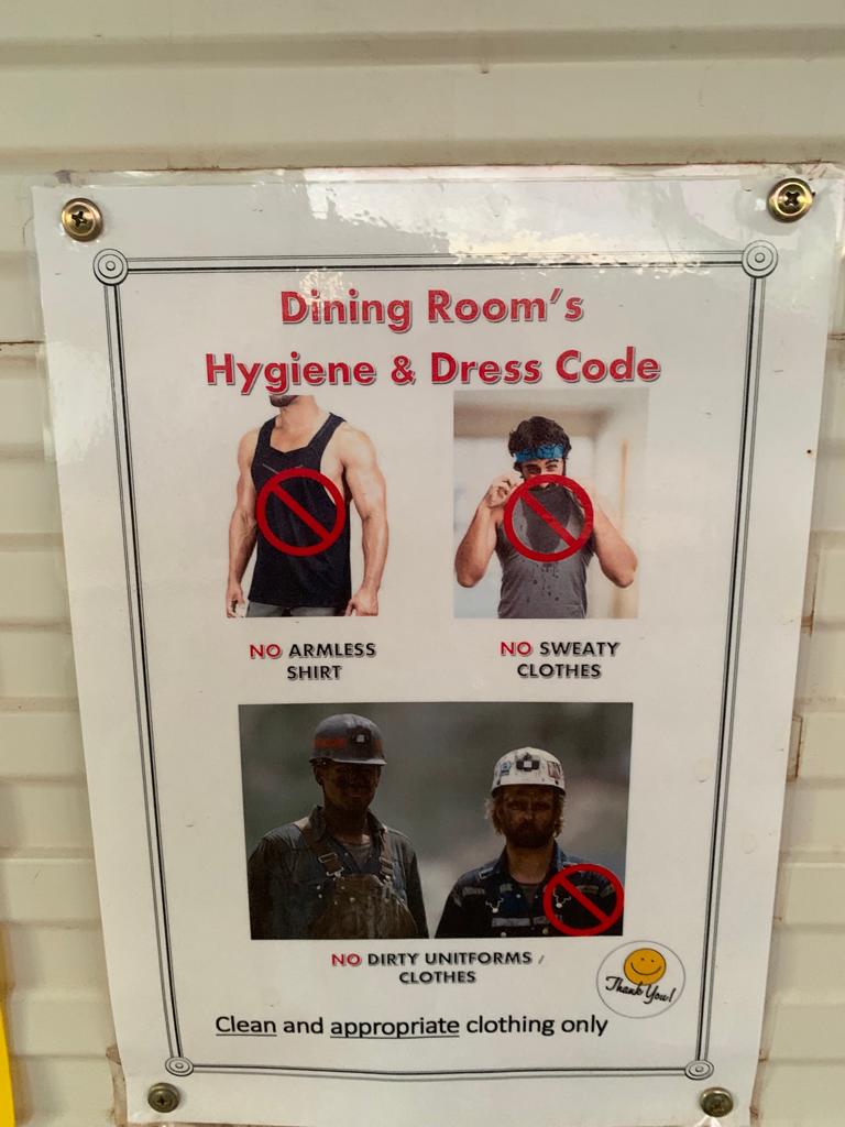 Continuing with the Mining theme we stayed at Leonora Lodge, an ex FIFO camp on the edge of town. Took care of bike maintenance while Liz did a load if washing , had a swim and ate at the buffet dinner. Liz got refused entry, see photo below and guess why. Early night.
