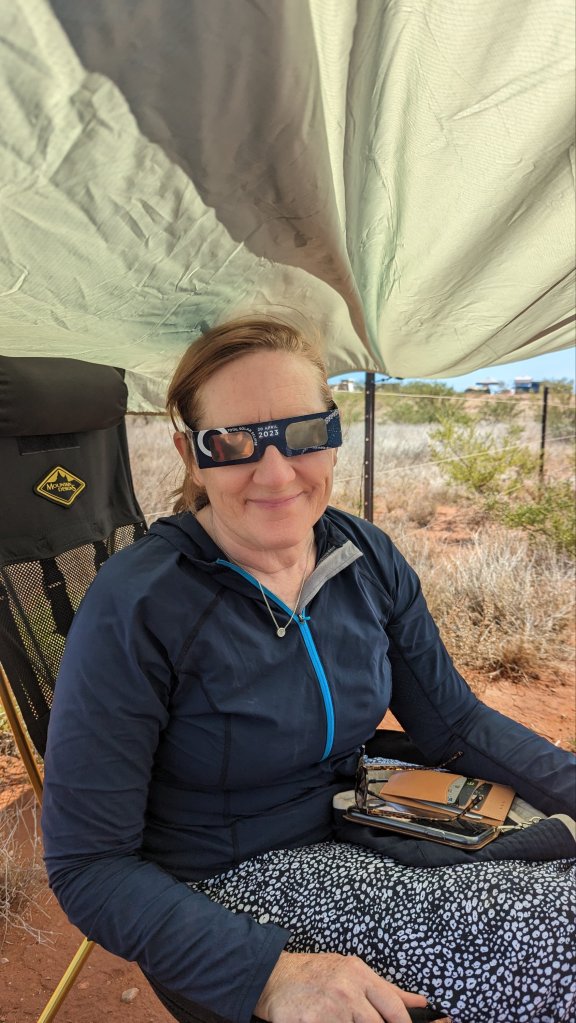 It was genuinely interesting to note the changes as the eclipse occurred. The wind died off, the temperature dropped and the light changed as we used our $4 eclipse glasses to periodically look at the Sun. Then darkness ( but not really ), and the frogs started up.