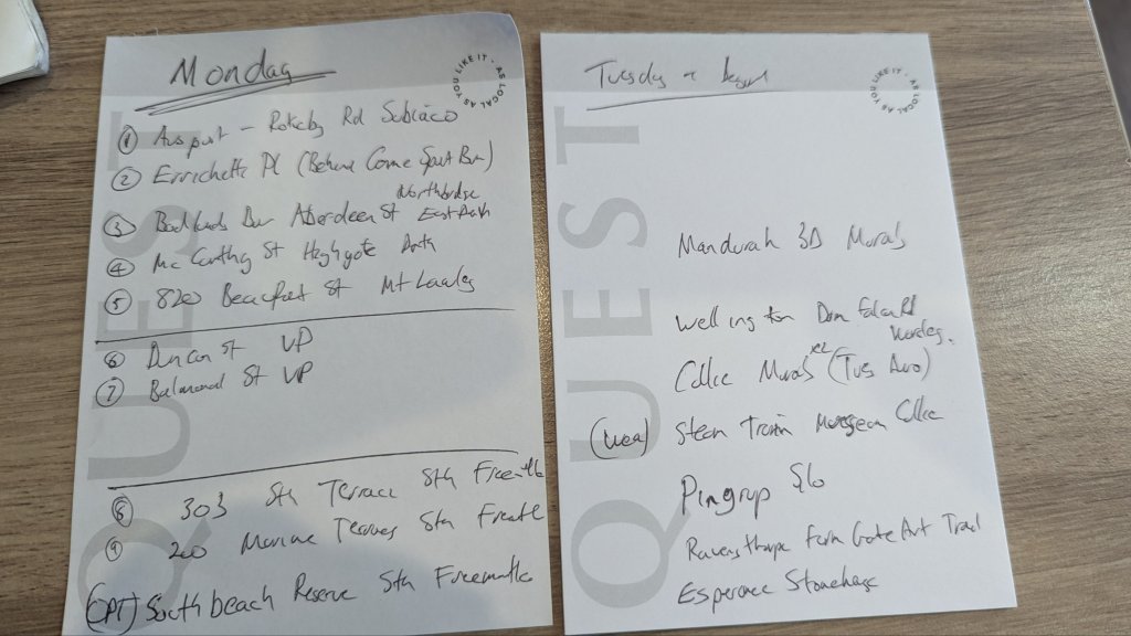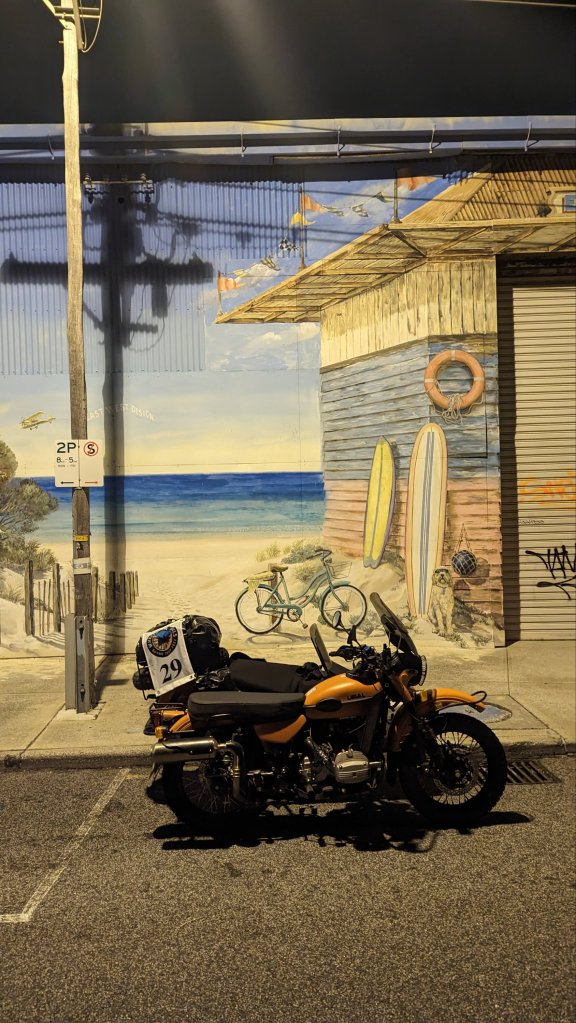 Made it as far as Sth Freemantle before it started raining. Grabbed a counter meal and then spent an hour and a half finding a room. Everything down the road was booked out, this being the Monday/ANZAC day evening, so i had to go back 10kms to Freemantle, and pay more than i wanted to. But it was dry and warm๐