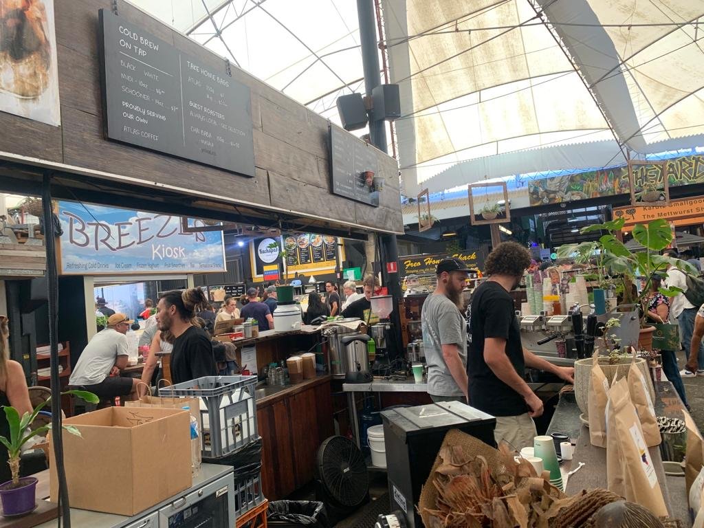Plan is Freemantle Markets. After solving the “Do we have to pay for motorcycle parking if we park in a motorcycle spot in a commercial car park conundrum ( the answer is no) we find out the market is a lot smaller, yet somehow busier, than expected.