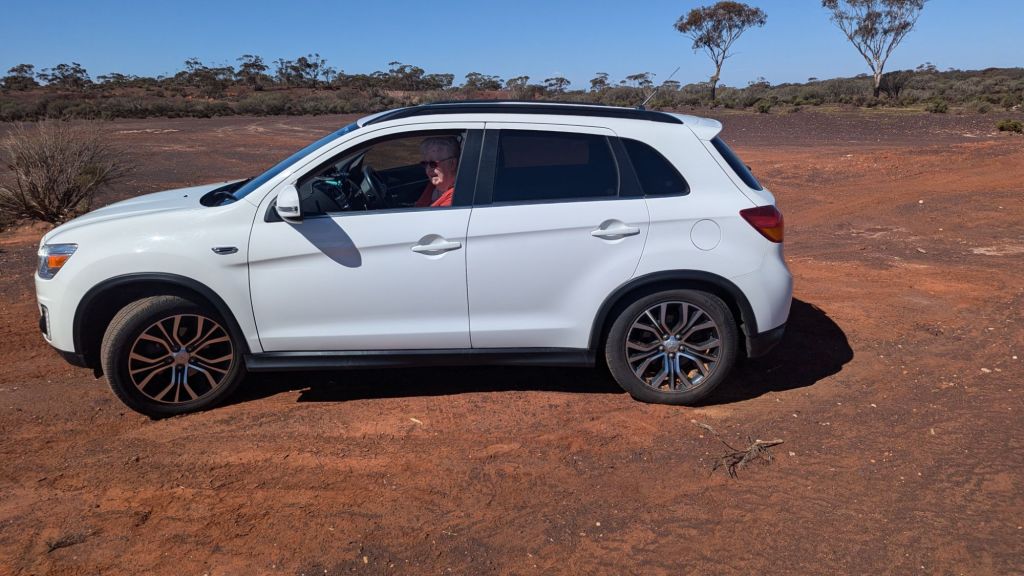 Kambalda was 50 kms down the road, so onwards it was. Ideas floating around included pulling the wheel off for a better clean at Balladonia tonight, to seeing if there was a car wash at Kambalda (yeah. right).