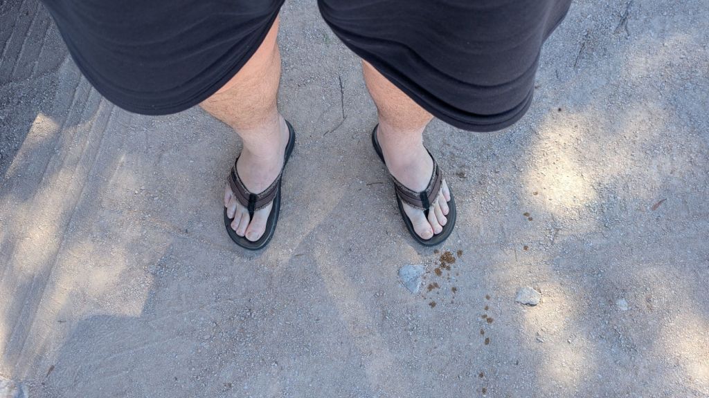 With a forecast top of 33 Degrees Celsius at our destination today it was time to break out the thongs. Another first, never before have I driven/ridden a single km of the Eyre Highway in a thong of any descriptionπ.