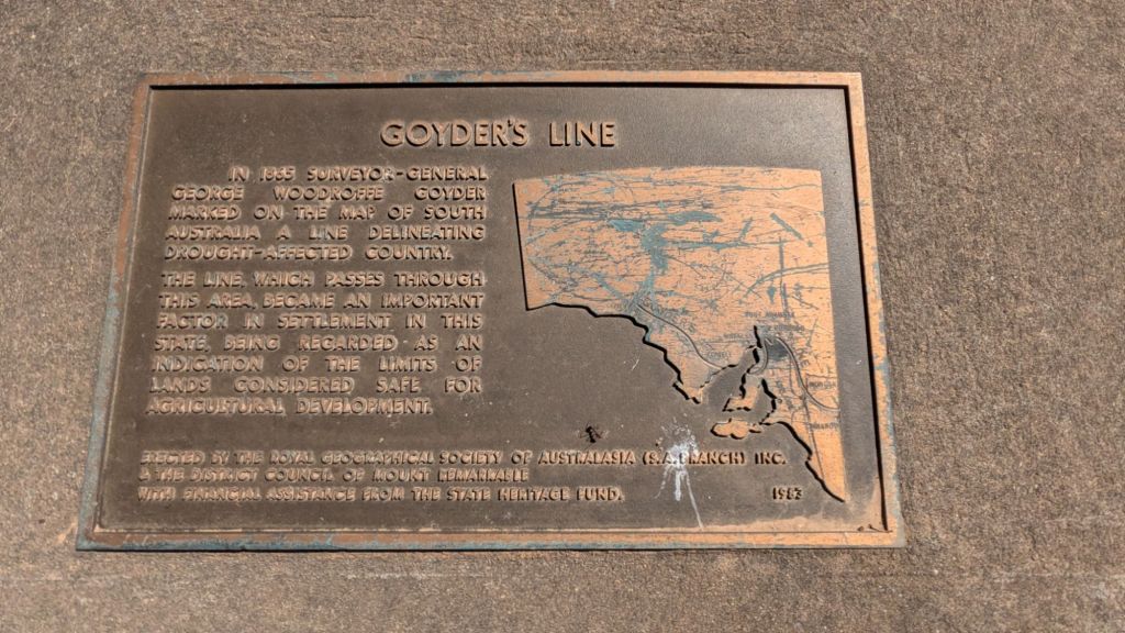 Fuel in Port Augusta, Horrocks Pass came and went, passed another delineator of the Goyder Line