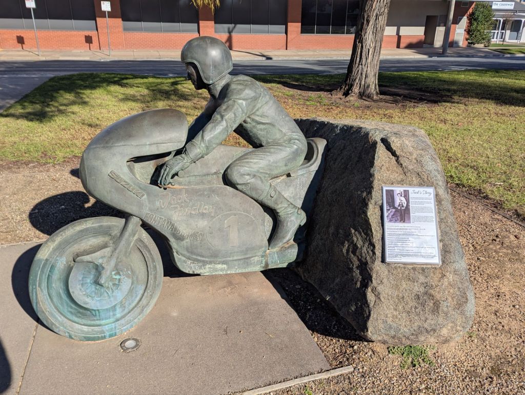 Ok, so a day late but we”re off, well 1 of us isJack Findlay sculpture in Mooroopna. Winner of the Isle of Man TT and 1975 FIM 750cc World ChampionshipVIP Section for a birthday party at Congupna👍Time to head into Shepp for dinner