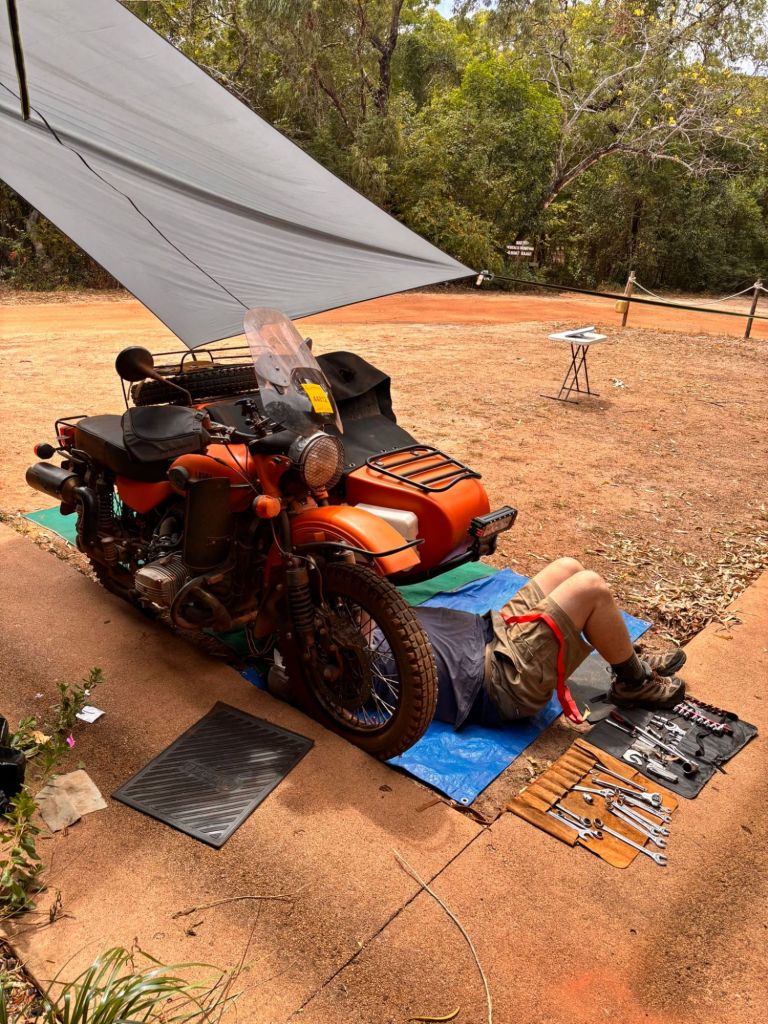 “Fuck me dead. I have been out wrenching in the sidecar since 8am in hot, windy and only somewhat shaded dirt, and Lizzie has been feeding me water the whole time. So i come in the aircon for a quick respite and a bite and am greeted with A DOZEN COLD GREAT NORTHERN ZERO ALCOHOL BEERS IN THE FRIDGE I COULD HAVE BEEN CHUGGING ONπ±”